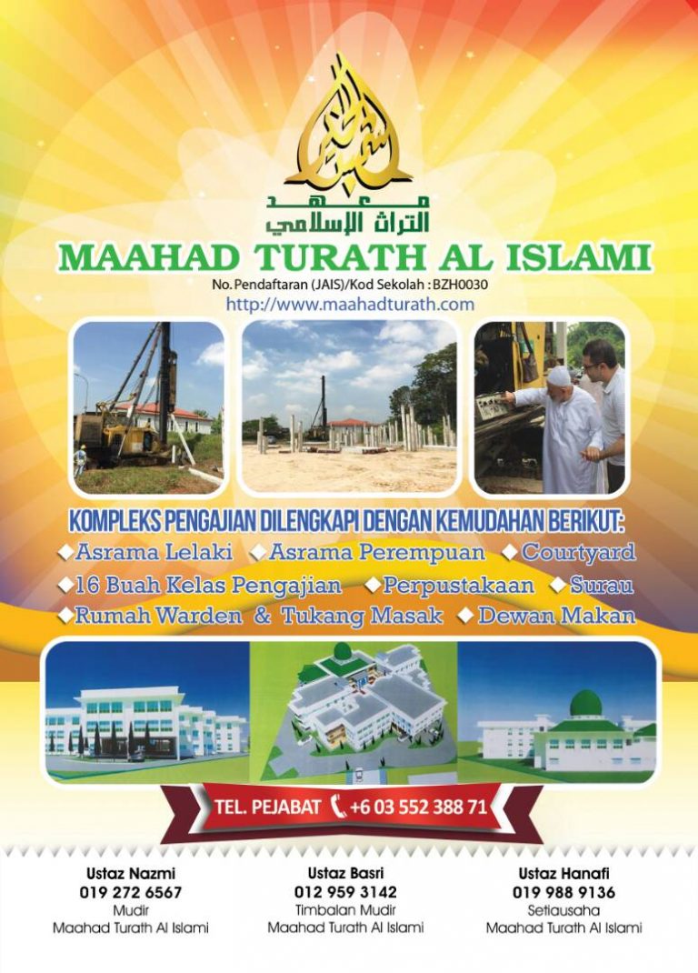 Maahad Turath Al-Islami Shah Alam Malaysia. 019-272 6567 Ustaz Basri. Pengajian kitab Turath secara talaqqi dari kulit ke kulit juga menitik beratkan hafalan.